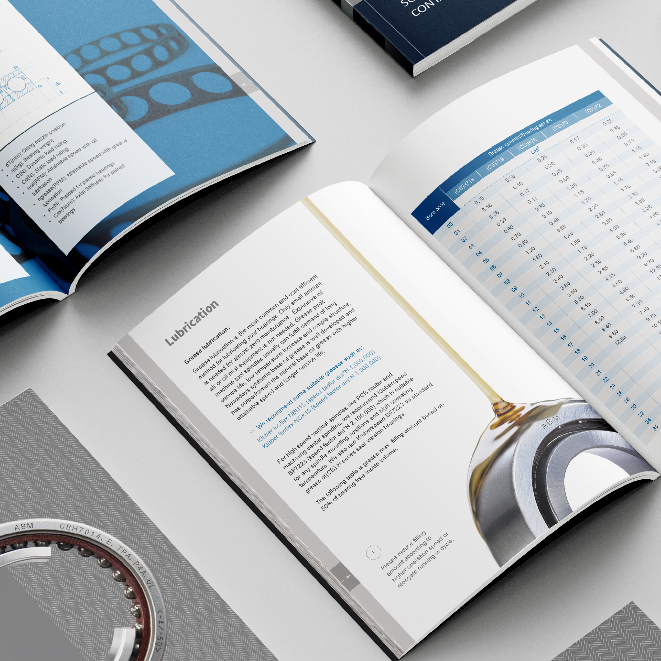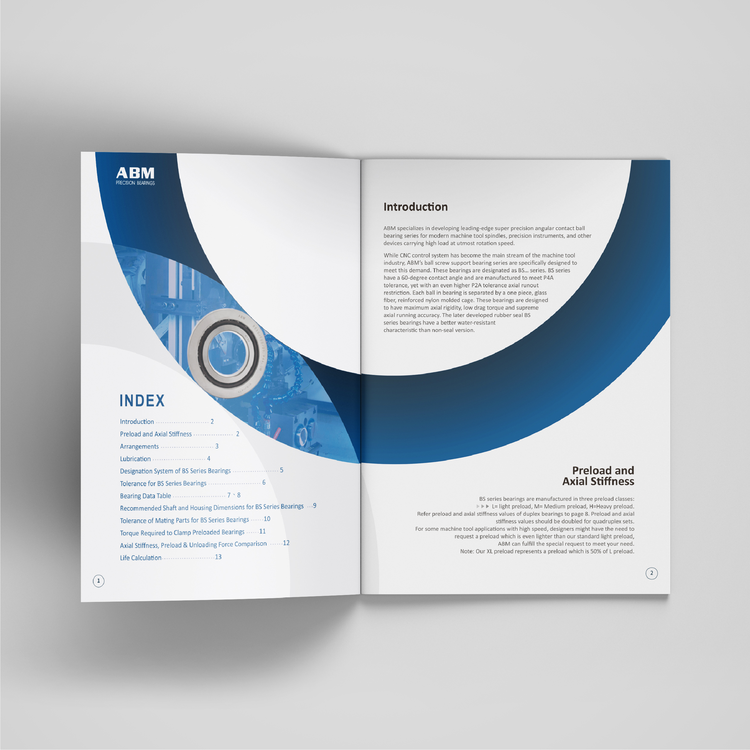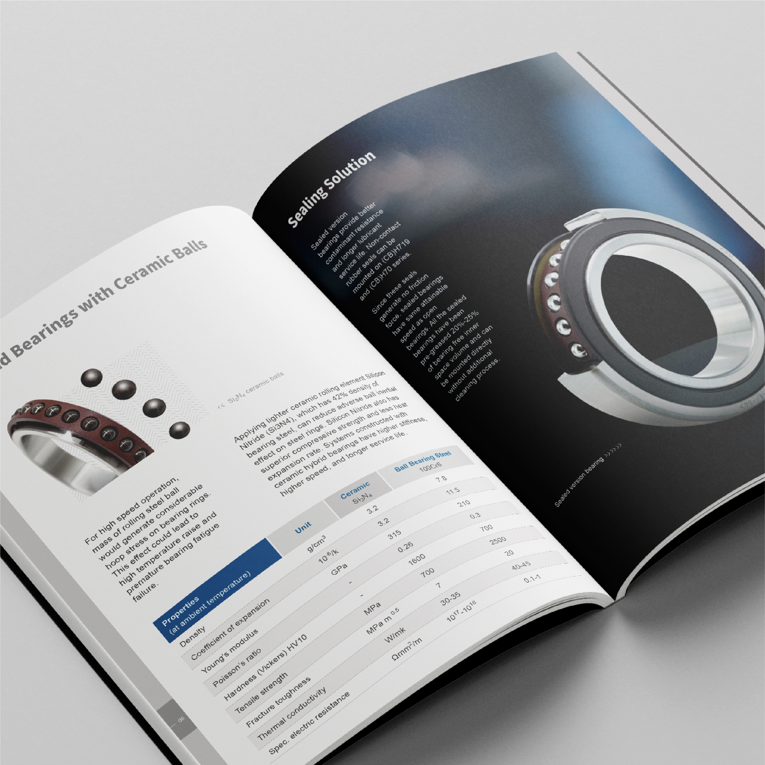 公司產品外銷世界各國,在兩本英文版型錄設計的風格裡我們延續了勁越精密嚴謹、專注的氛圍,沒有過多花俏的排版裝飾,有的是實打實的高品質硬實力,在封面的設計上以公司的主要產品-軸承為主要視覺,融入了圓的意象,強調「運轉不停、生生不息」的耐用形象,並以特殊加工方式結合視覺與觸覺兩感,不只提升質感,更可以大幅增加客戶拿在手上的印象。