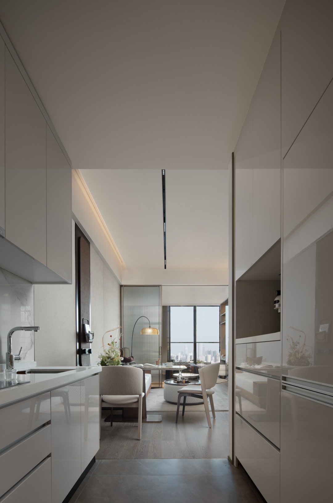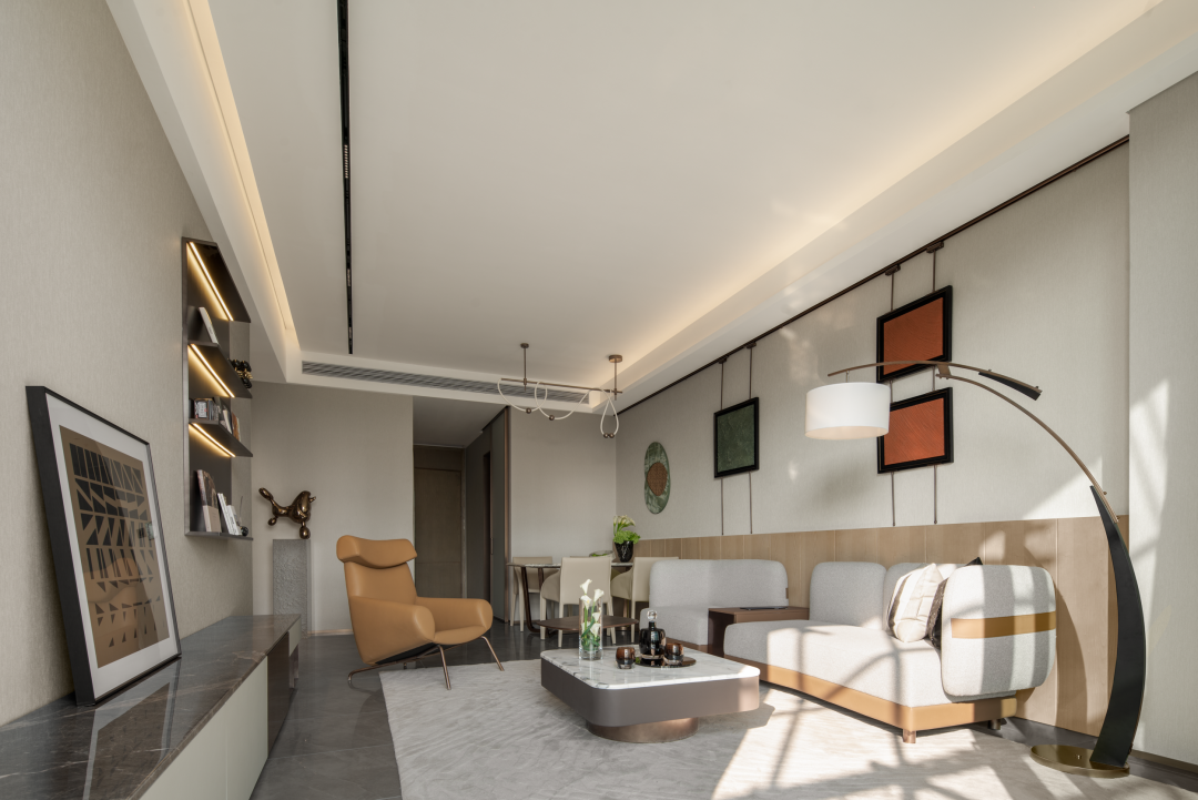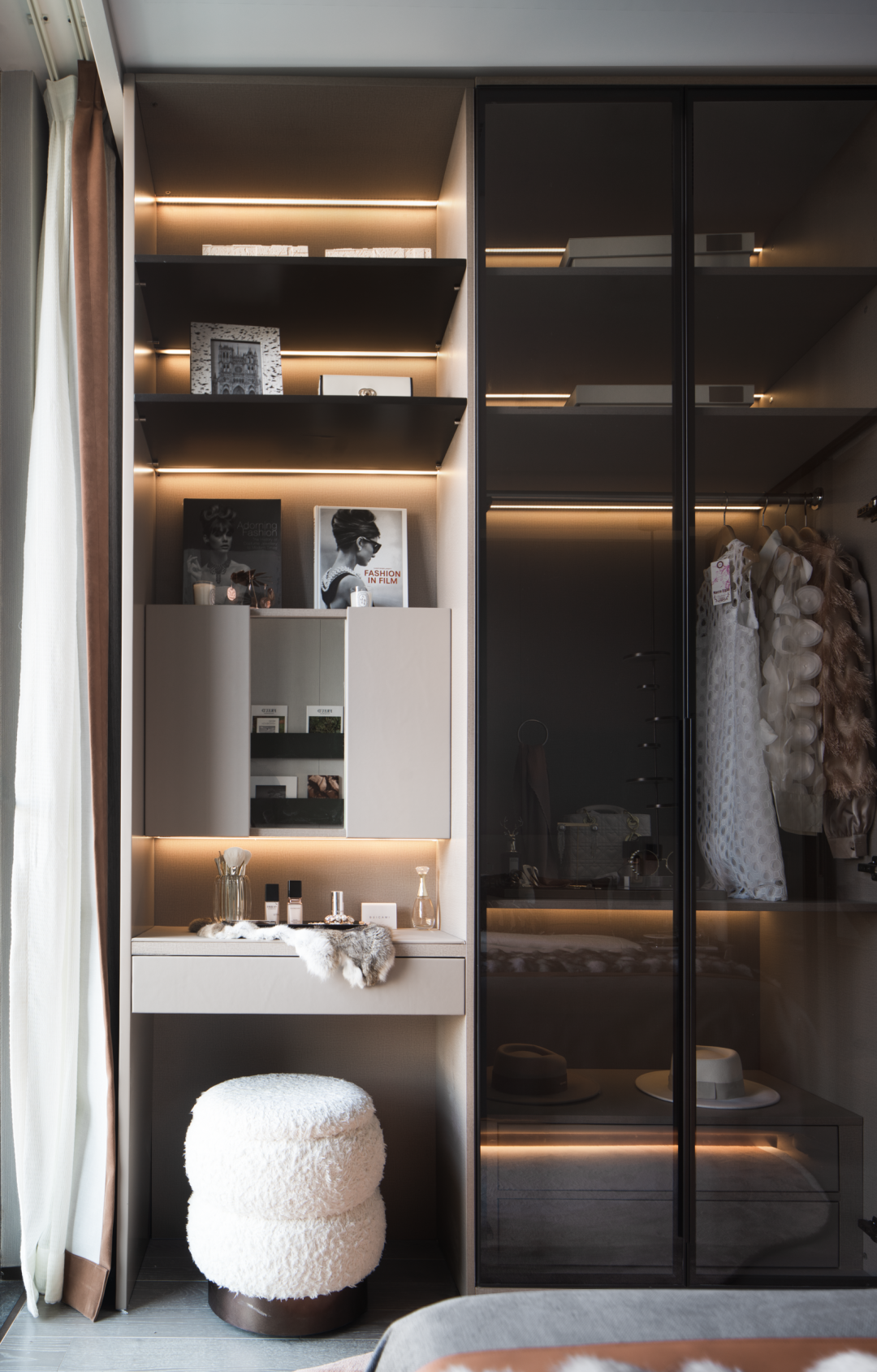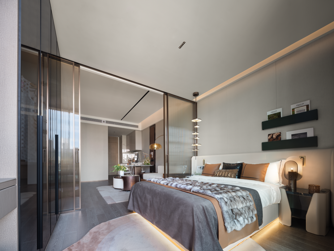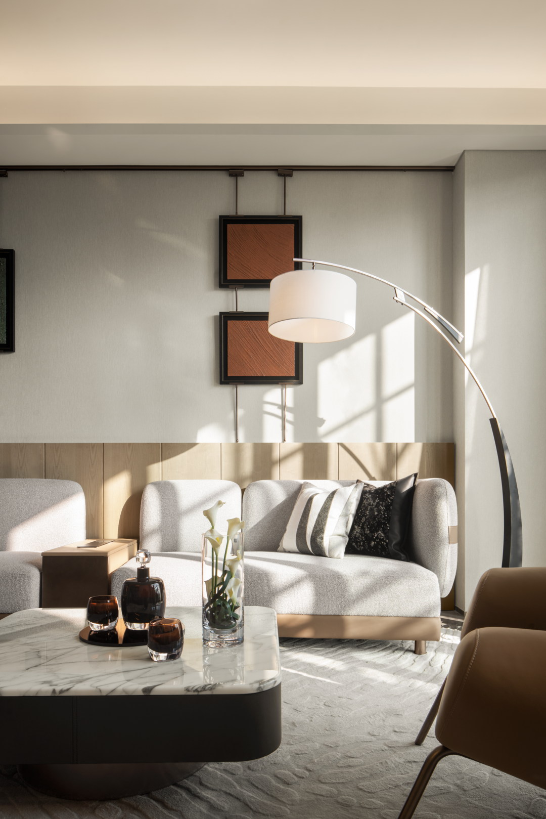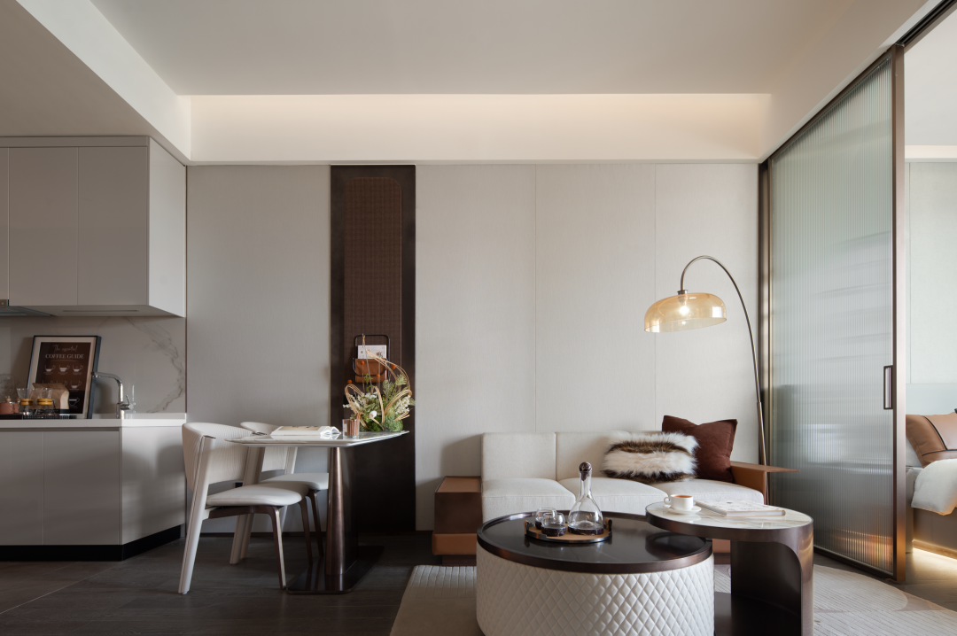 這次設計呈現兩種輕奢風格空間的精緻魅力。