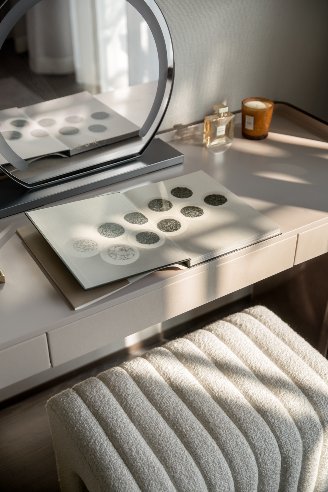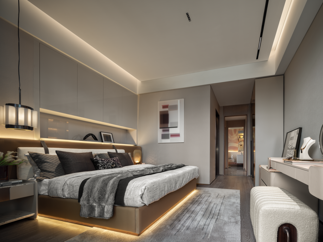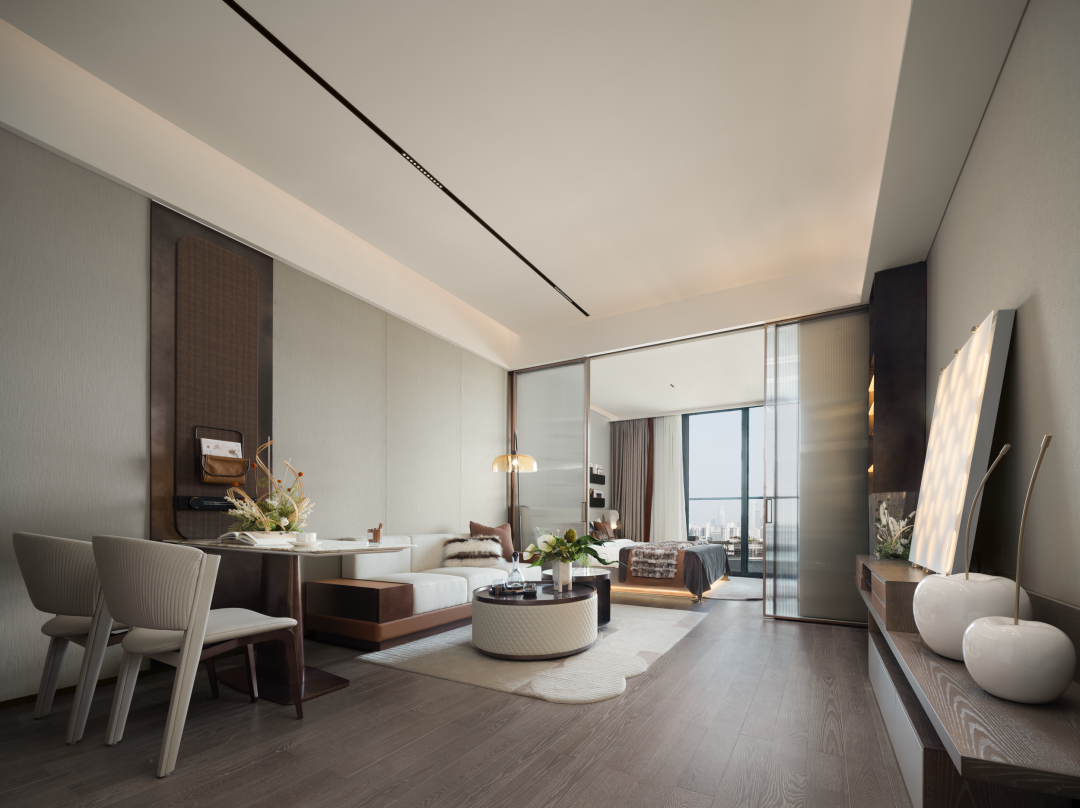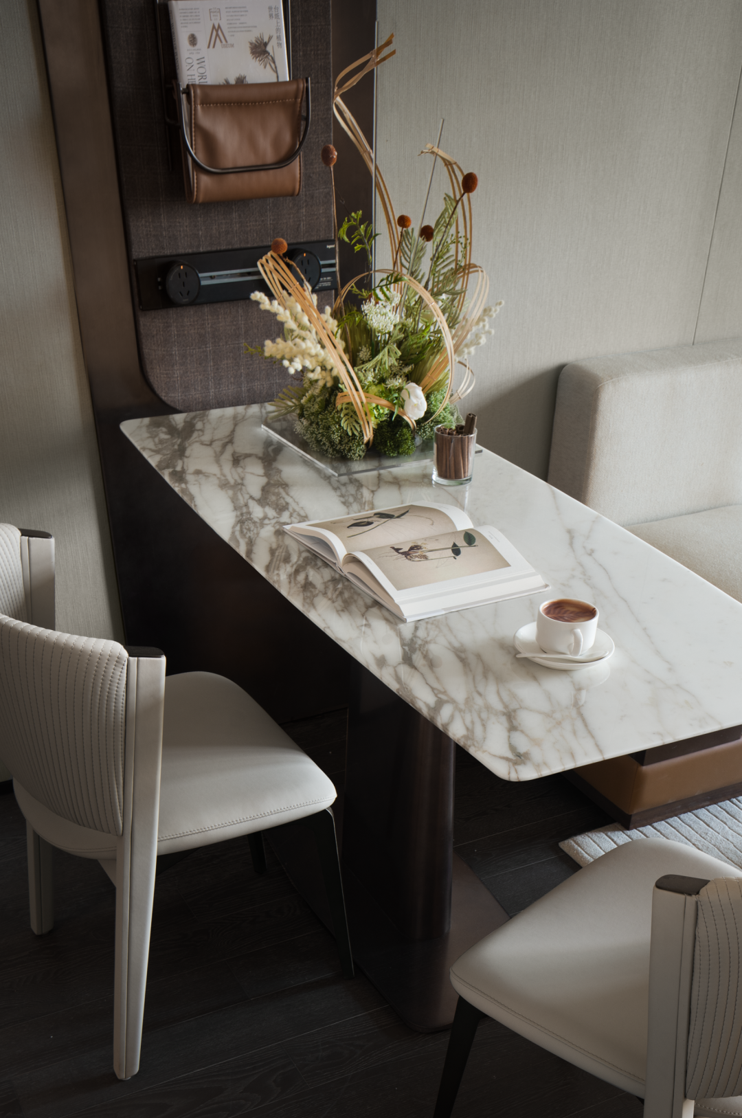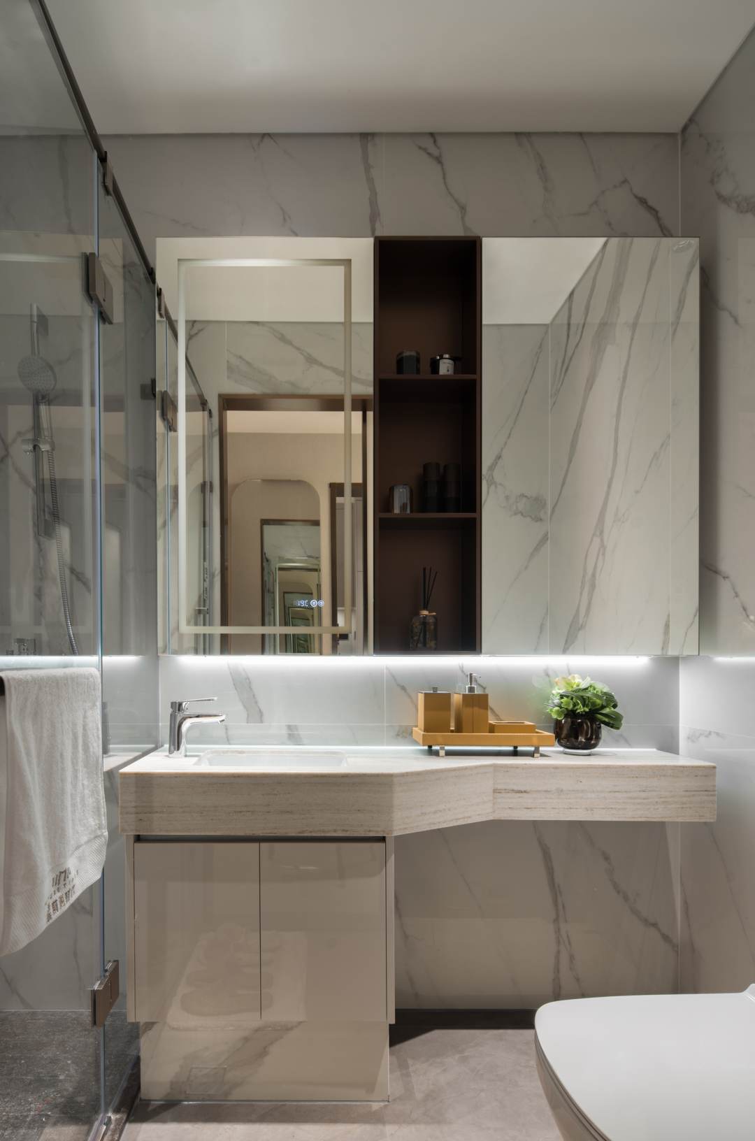 這次設計呈現兩種輕奢風格空間的精緻魅力。