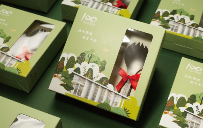 羅布森樓梯升降椅 LOBSANG STAIRLIFT 羅布森圖書館 動土儀式 / 贈禮包裝設計 / 禮盒視覺主軸以「森林」與「圖書館建築」為構想,選用溫潤而富生命感的綠色系作為主色調,呼應羅布森圖書館「生態水綠圖書館」的核心理念——打造一座與自然共生、與城市共融的「森林中的圖書館」,展現知識、自...